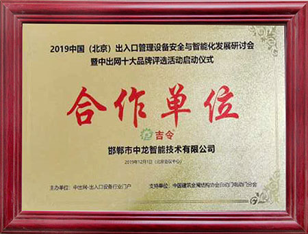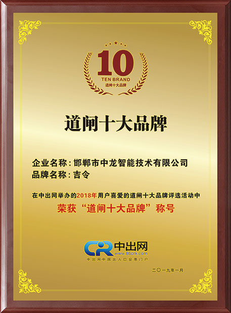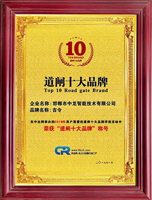 道閘十大品牌證書(shū)